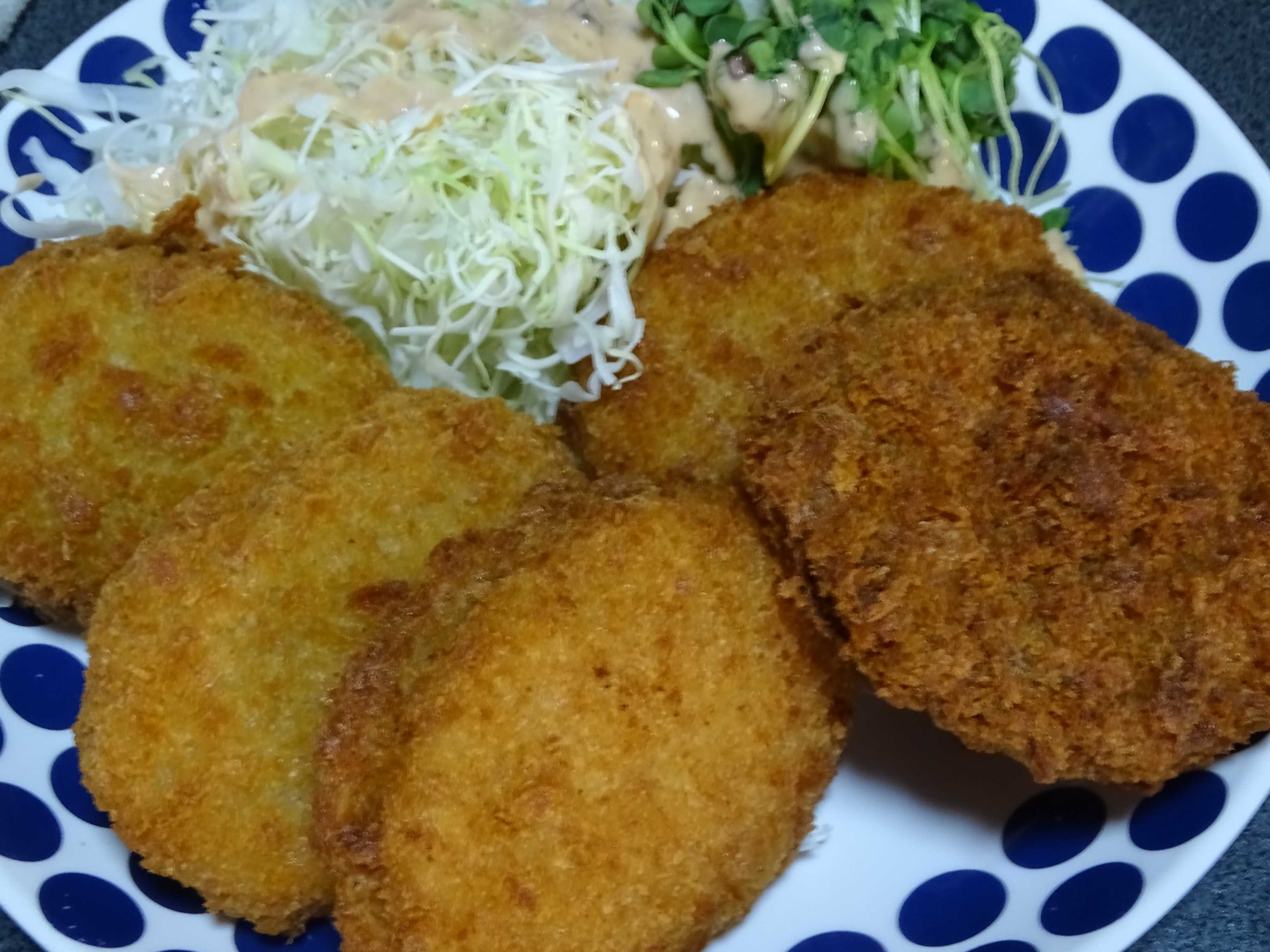 失敗したぁぁぁぁ今日はコロッケの予定だったのに・・午前中に揚げ物をやってしまった・・・・まぁぁ・・・・いっかぁぁメンチも入れて5個なんだけど・・3個で良かったのかもそのため・・・ご飯はやっと食べきりました・・・(^_^;)💦これは業務用スーパーで買った冷凍コロッケ・・・中温でユックリ揚げないと破裂しちゃう・・今度は色んなハンバーグでも買って来ようかな・・・