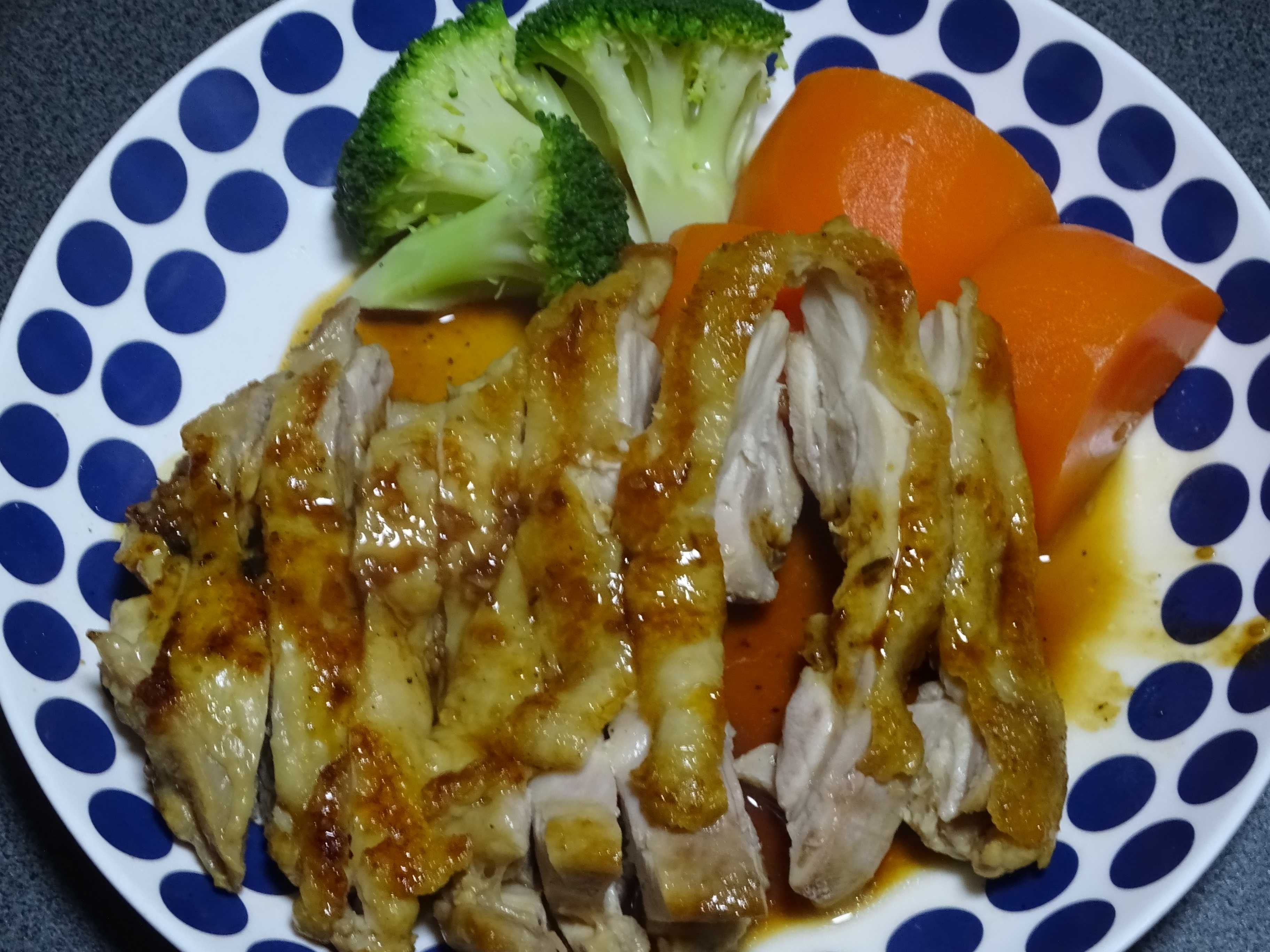 今日は鶏肉にしようと思って朝05:00に冷凍庫から・・・・最近はだいぶ冷えて来たので、昼に確認したらまだだいぶ硬くて・・・で・・息子が帰宅したので肉を確認すると・・まだちょっと・・・・・という事で・・レンジの解凍で1分・・・・後はグリルパンを使って・・・簡単に生姜焼きに・・・最近肉にはキャベツスライスを使ってたんだけど・・息子からクレームが・・・という事でブロッコリーと人参グラッセ・・・・これには息子からも何も言われなかった次は野菜に何を・・・たしかに毎回スライスキャベツじゃぁなぁぁぁ私は面倒じゃないので好きなんだけどね・・・