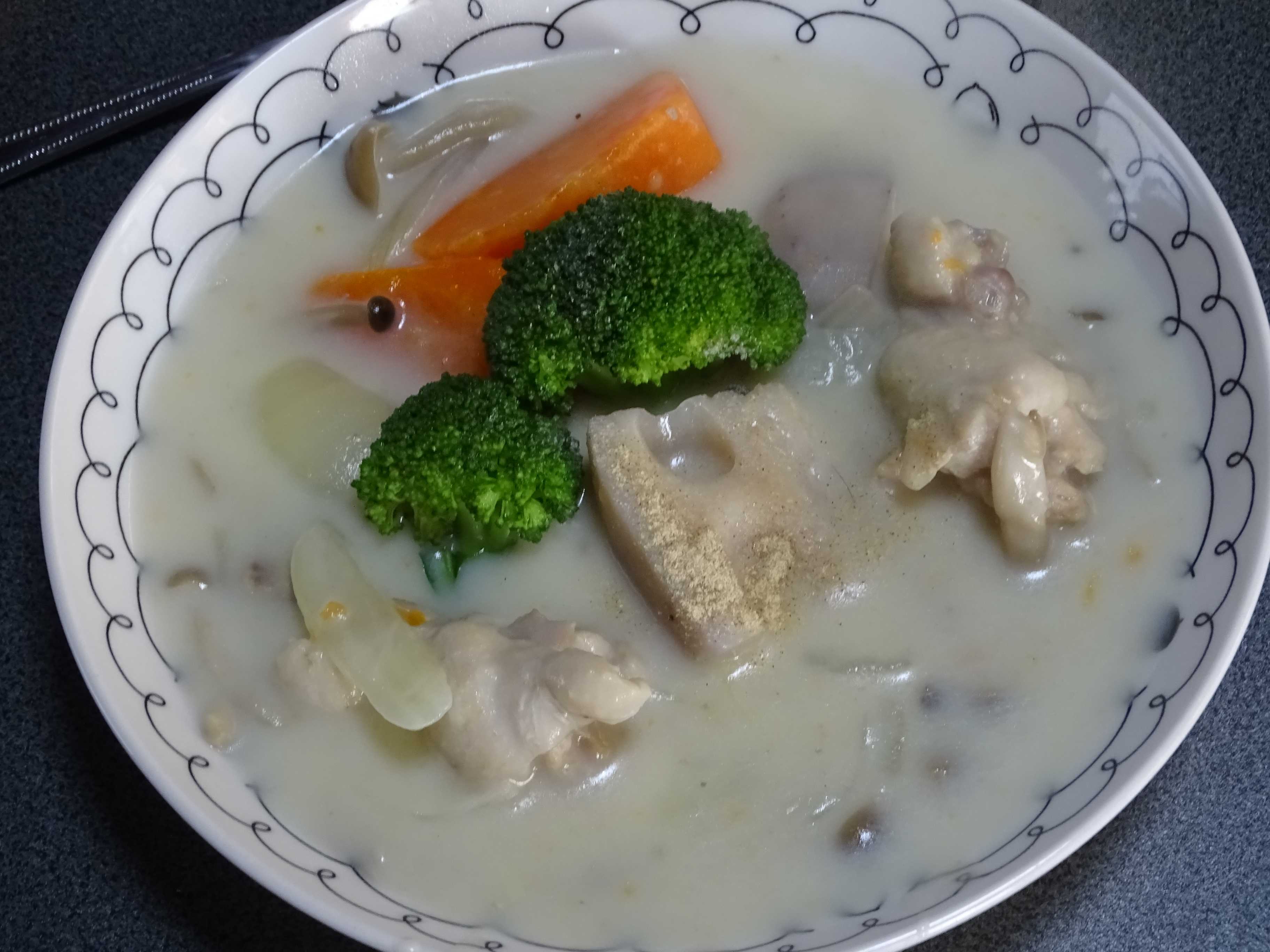 今日は息子を耳鼻科へ・・・というのも・・・先週になんか左耳が上手く聞こえない・・・とでちょうど外来があったので主治医に相談してみたら・・・耳が詰まってる・・・とそれで今日はネット検索して耳鼻科へ・・・・で言われたのが・・・綿棒でやったでしょ・・・今は綿棒を使っちゃダメなんだって普通は顎をよく動かせば耳垢は外へ押し出せれてくるそうなんだとかそれでも出て来ない場合は耳鼻科へ受診して・・・と言われたそれを終えて・・息子は・・凄い良く聴こえる・・・・て息子は・・どう言うんだろ・・グジュグジュ耳だからなぁぁぁ私は乾燥している様な耳だから、時々耳垢が出てくるのがわかるんだけど・・・・これからは時々耳を確認して出て来ないようなら受診しないと・・・だねで・・今日は寒かったから・・・食事はシチューに・・・・我家のシチューは蓮をいれるんですよねぇぇ・・私が好きだから・・鶏は手羽元・・なんか骨付きの方が美味しい気がして・・・で・・食べる時に・・ホワイトペッパーを一振り・・・・ふ~~~~2回もオカワリしちゃった・・・(^_^;)💦もうお腹パンパンです・・・・