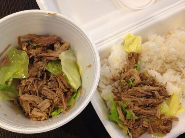 ラスベガスにはハワイから出稼ぎもしくは移住して来た人が多いので、ハワイのファストフード屋さんが幾つかあります。 ケンもハワイ育ちだから、その中でも何処が本物( ^ω^ )か味やメニューに厳しいです。 写真はカルアポーク、肉、野菜、ご飯のバランスが気にいってるみたいです。 近所のチェーン店はハワイ出身じゃないチャイニーズが適当に作った偽物だと言い、遠くてもハワイアンが集まるお店へ行きます。