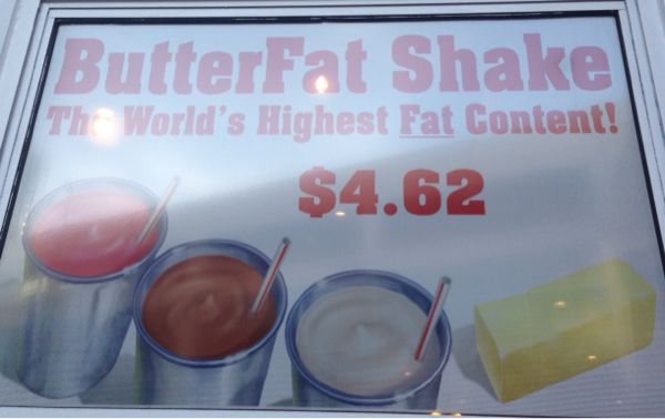 ラスベガスのダウンタウンを散歩していたら、トンデモ(^◇^;)レストランを発見! バター入りシェイク??何かの間違いかと思ったら、本当みたいです。 ギネスブックに認定された、世界一不健康なレストラン、ハートアタックグリル、、、。 入り口付近に体重計がありました。 嫌がらせメールはこちらへ、現金のみ、なぜならチェックがクリアーする前に死ぬかもしれないから☻と入り口に書いてあります。 食べたいとは思わないけれど、誰か友達がラスベガスに来たら、ネタで行くかも★彡