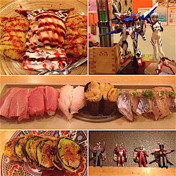 アボカドと魚数種類のロールが揚げられたディープフライドロールヽ(;▽;)ノ そして!バナナの天ぷらとアイスクリーム。 見た目とカロリーはヤバいけど、味は美味しいです。 ヘルシーなメニューも注目しましたよ、ハワイで食べた醤油マヨネーズやコチュジャン胡麻油とまた違うマリネ、タマネギサラダみたいで美味しかったです。 熱燗$2 (^o^)も嬉しい値段。 カウンターにはガンプラと綾波レイ。しかも、禁煙! Naka sushi はガンダムに出てきたミード湖につながるLake Mead とRampart 交差点近くにあります。 ラスベガスのストリップから離れた住宅街近くにある隠れ寿司レストラン、サマリン地区の方にオススメです。