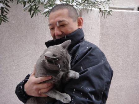 体に付いた雪をベロベロなめるだけでなく、空から降ってくるのも口で受け止めていました。