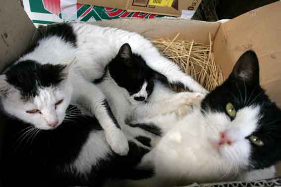 昨日、高知から帰ってきたら、納屋の軒下でシロ親子がダンボールの中で寝ていました♪箱の中にはシロ母さんと、チョビ、そしてふじこが仲良く寝ていました!!箱が小さくて、トラは入り切れずに別の場所にいました・・・。マスクもミケの子供で、仲間入り出来ず・・・。おとなし過ぎてもいけません・・・。ニャンコの世界も厳しいです!!4月も後半、今日から月末に向けて忙しくなります!!(*^。^*)♪