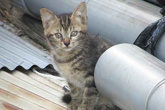 おはようございます♪午前5時起床、鉛筆画の文章をまとめました♪今朝のニャンコはニューフェイス!!寅さんの子供です(●^o^●)♪ 寅さんが産んだ四匹の中で、この子が一番活発です♪早くなついて欲しいです(●^o^●)♪ 太いパイプの上で遊んでいます♪そして・・・このパイプの中が避難場所です(笑)!!(*^。^*)♪