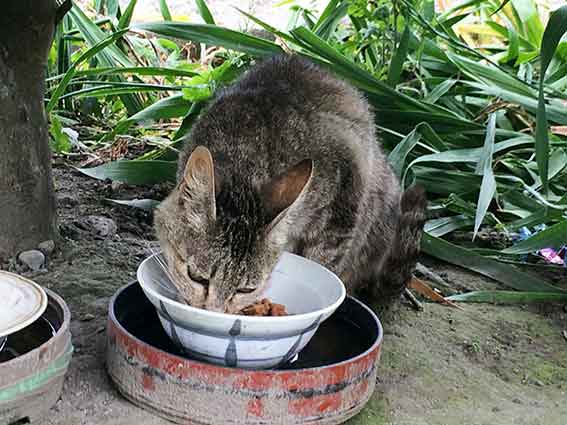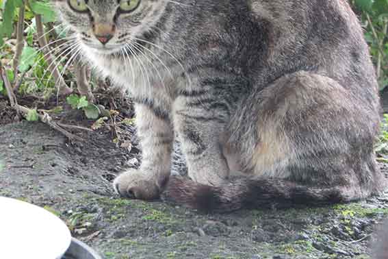 おはようございます♪26日、日曜日の朝は肌寒むかった・・・!!午前5時起床、鉛筆画を仕上げて編集部へ送信しましたヽ(^o^)丿今朝のニャンコは、昨日撮ったニューフェイスです♪ トラちゃんの子供たちです♪三匹かと思っていたら・・・四匹でした(●^o^●)♪よく似たトラ猫が二匹いました♪キャットフードをモリモリ食べています♪寅さんとこも四匹のニューフェイス・・・。一週間のニャンコの食料が、2.7kg袋が4袋となりました♪ 昨夜もアップしましたが・・・トラちゃんの左手・・・ありました!!手首は折れているか、筋が切れているかでブラブラしています!!もう痛みはないようで元気です!!たくましい・・・!!今日は快晴(●^o^●)♪このあと125ccのスクーターで高知までツーリングしてきます♪高知市正連寺オートランドで四国選手権トライアルの高知大会が開催されます♪ヽ(^o^)丿