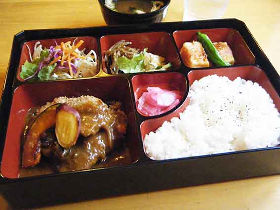 今日は納品がたくさんありました♪吉野川市山川町のアメリカンステーションで昼食をとります♪「日替わりランチ」は「ポークカツ」と「豆腐のベーコン巻き」でした!! 「ポークカツ」です♪薄く揚げたカツはサクサクで、カレーソースがかかっています♪ごはんによく合います!! 「豆腐のベーコン巻き」です♪「きんぴらごぼう」に「大根の浅漬け」・・・美味しくいただきました(*^-^*)♪ 一昨日から、ブログ更新に使っていたウィンドウズ7が繋がらなくなりました!!無線になっいているのですが・・・マックや使っていない(笑)ウィンドウズ10は繋がります???昨日からウィンドウズ10で更新をしていますが・・・使いづらいですねぇ・・・。