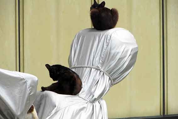 おはようございます♪午前5時25分起床、雑用をこなします!!今朝のニャンコは・・・クロネコ3号・4号です(●^o^●)♪手前にとらおが隠れています♪私のスクーターが・・・ニャンコの憩いの場に・・・(笑)!! くつろいで・・・ますネェ・・・(笑)!!今朝は曇り空だったのですが・・・小雨が降り出しました!!梅雨ですネェ・・・。週刊天気予報では、週末はくもり・・・。なんとか崩れない事を祈ります♪ 後ろから見ると・・・結構フサフサです・・・!!蒸し暑い一日となりそうです♪(*^_^*)♪
