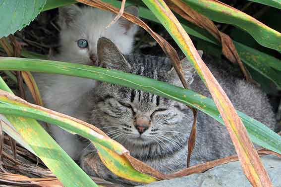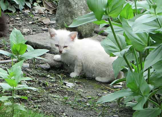 トラちゃんの左手首がない!!驚いたのですが・・・ありました(●^o^●)!!手首を引っ込めていたので短く見えたようです♪良かった!! トラちゃんの子供、三匹と思っていたらトラ猫が二匹いて、全部で四匹でした♪寅さんとこの四匹と合わせて八匹のニューフェイスです!!