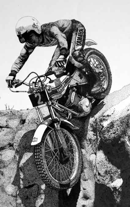 私がイラストを描き始めた頃は、モノクロの作品ばかりでした。それは、オートバイ雑誌のイラストコーナーに投稿するのが目的だったからです。