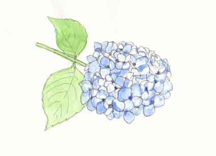 しかし・・・庭から採ってきたアジサイを前にして・・・はたと・・・どう描いていいものやら・・・。