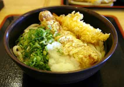 写真は「冷しかけうどん(大)」310円に、「ちくわ天ぷら」80円、「えび天ぷら」120円の合計510円です!!