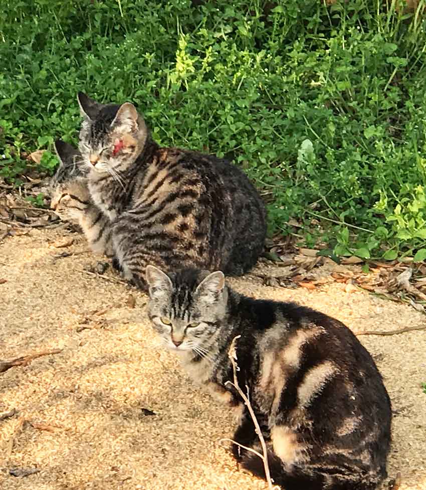 今朝のニャンコはトラ母さんとこのトラ三兄妹ですヽ(^o^)丿