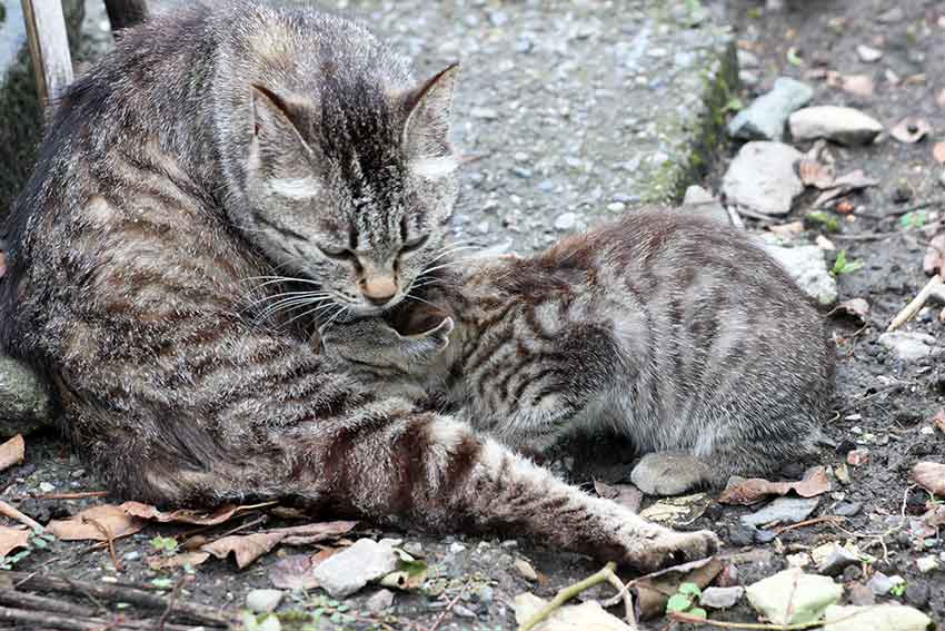 今朝のニャンコはトラ母さんとニューフェイスです♪