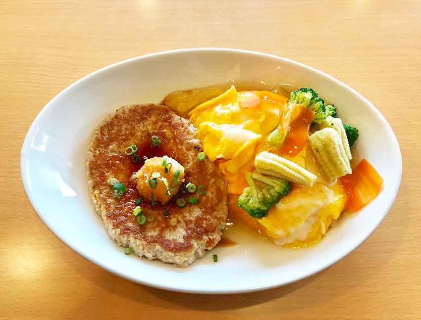 3月の新メニュー「お豆腐冨ハンバーグとあんかけオムライス」です♪