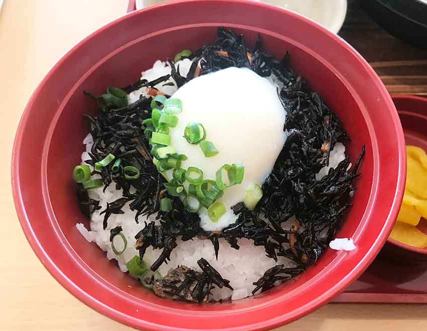「ひじき」と「温泉たまご」の乗ったごはんが美味しいですヽ(^o^)丿