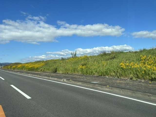 国道192号と吉野川の土手。