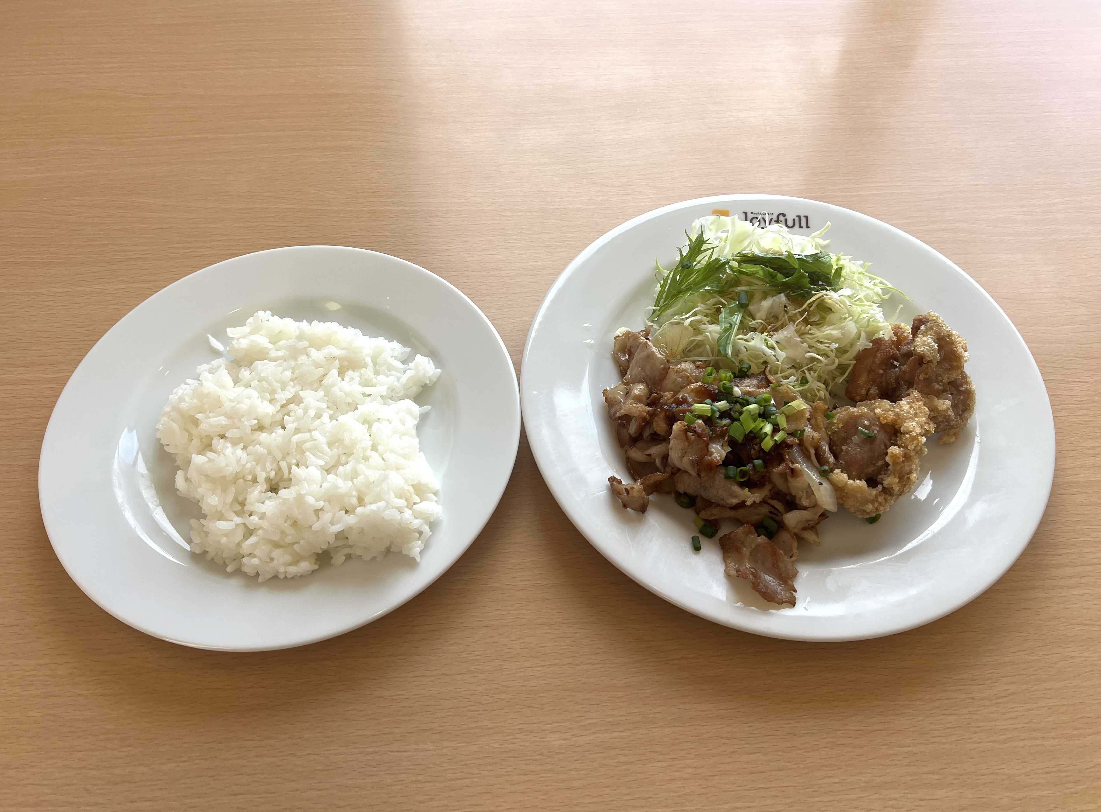 火曜日の「日替りランチ」は「豚生姜焼き」と「から揚げ」でした。