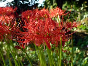 今日は彼岸の入り。ということで、ちび子たちとお散歩中に見つけた彼岸花。よく見ると、きれいな花だね~。久々に外を歩くと、蝶やトンボがいたり、変わった花が咲いてたり…いろんな発見があるもんだね。散歩の目的は庭園鉄道。個人の方が趣味でやっているので、不定期に開催。今日は、やってて良かったね。汽車で3周。帰りにはヨウシュヤマゴボウの実を採ってきて色水遊び。私も、小さいころによく採ってきて遊んだな~。自然に中に住んでいるって素晴らしい!!