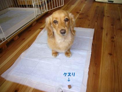 遅くなりましたが。月に一度のフィラリアのクスリをめいとここに食べさせました「オスワリ・・・マテ」 「オスワリ・・・マテ」「ヨシ」