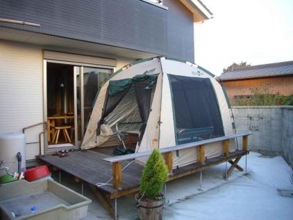 この前 達彦が・・・「焼肉せ~へんのん えっとしてないんとちがうん」(焼肉しないん 長いことしていないんじゃない)・・・と言うので、考えた 家の中で焼肉のあの煙は、OUTしかし 外でするには もう寒くなってきているどうしよう~人気ブログランキング!で、タープをウッドデッキに設置してみた久々に <すぎも家オートキャンプ場> がオープンしました。