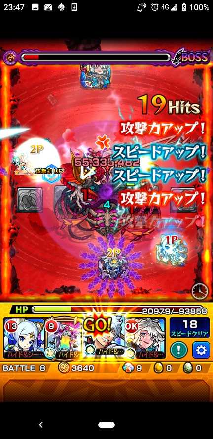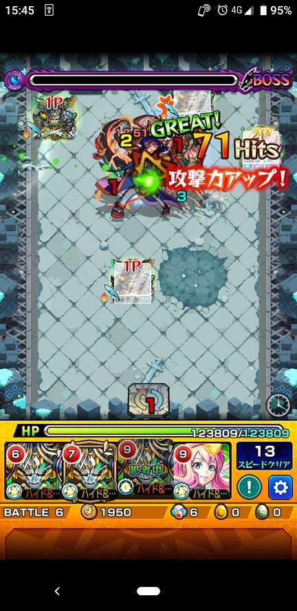 ゲヘナクリア。ノアがラック80↑なので運枠で使ってますね。先月にツァイロン運極作ったので早速活躍してます。