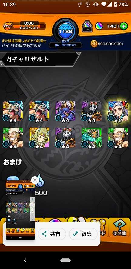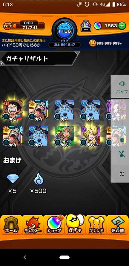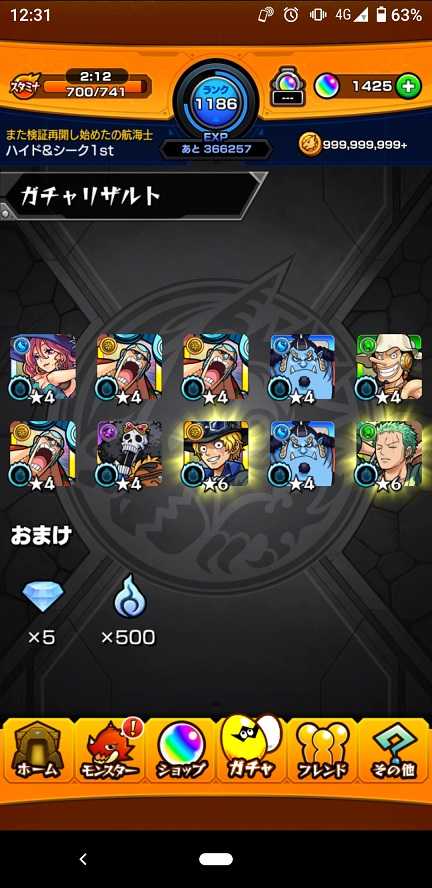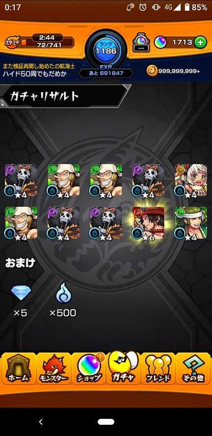 ワンピースコラボですね。1回の新規コラボでガチャ2種類実装してきたのは初めてでしたね。まあ人気あるアニメとのコラボだからなのもあるか?