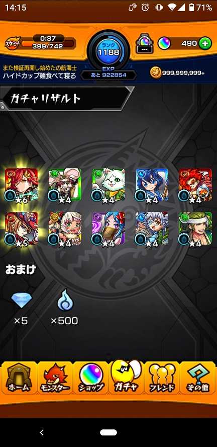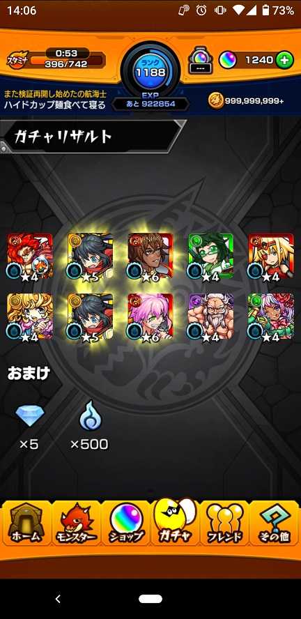 オールスターガチャかな?弁財天来ましたがもう運極なのでいらないです。弁財天αとか来るなら話は別だけどね。