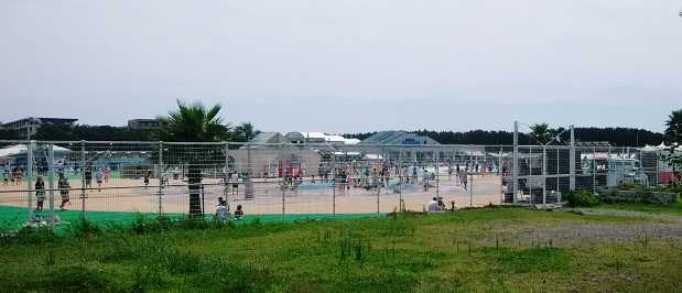 猛暑で隣接する大型プール施設は大盛況の歓声でした。