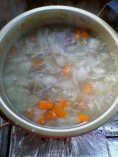 現在鋭意制作中のカレーです。料理を始めたのは、ココ1年くらいで、まだまだお料理本とにらめっこしている状態なのですが、とても楽しいです。なんでこんな楽しいことを今まで避けて通っていたのか不思議で仕方ありません。得意料理は、ポテトサラダ。作ったことあるのが、カレーライス、クリームシチュー、ビーフシチュー、ハンバーグ、餃子、炊き込みご飯、ピラフ、オムライス、オムレツ、肉じゃが、親子丼、酢豚、野菜炒め…などなど。…レパートリー少ないですね。でも、これからどんどん増やして行けたら良いな、って思います。