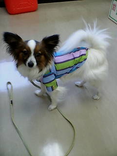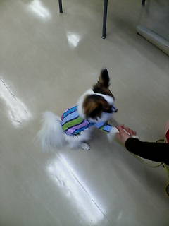 あっちでも「お手」こっちでも「お手」今日のランは人気者でした。いつも気軽に「お手」するのに今日のランはもったいぶったのかなかなかしてくれませんでした。でも、ご褒美はちゃんともらえました。服も褒められたし、良かったね。