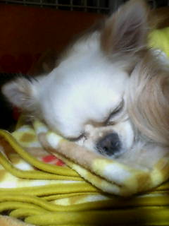 なぜだか今日のお散歩は全力疾走だったので、(スケぞうとランが勝手に走り出したんです)すっかり疲れてしまったらしく、早々とおやすみです。眠ってるときは、とてもかわいらしい。…この画像では眉間にシワが寄ってますが…。悩み事でもあるのかな。私も昨夜眠れなかったので、そろそろ眠くなってきました。