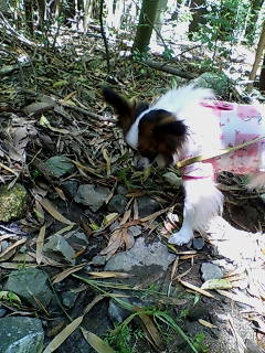 一昨日届いた新しい服を着て、お散歩です。この服は本来パジャマなのだそうですが、母が気に入って、購入しました。知ってる私から見れば「パジャマ以外の何者でもない」のですけれど知らない弟たちには、パジャマだとバレませんでした。気を良くした母上さまは、さらにお買いあげ予定みたいです。確かに、春らしい、かわいらしい洋服です。ランも新しい洋服がわかるようで、今日はみんなに見せびらかしています。スケぞうを撮ろうとカメラを向けると、突進してきます。自分を撮って欲しいみたい。なんだか誇らしげです。