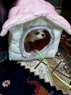 スケぞうはおうち大好き引きこもり犬なので、たいてい自宅にいます。飼い始めた頃は、気むずかしく人見知りも激しかったせいで本当に自宅から一切出てきませんでした。静かでいいなぁ…と思っていたら、すぐに慣れて、今度は自宅に帰らなくなりました。ランがうちに来てから、ランの方が力が強く、スケぞうのモノを全部持っていってしまうので再び引きこもるようになりました。しかし、スケぞうが奇襲作戦を覚えてからは、今度はランが引きこもるように…。誰か来ると一斉に出てきて、吠えまくるので、ずーっとおとなしく引きこもってくれてた方が良いかも。