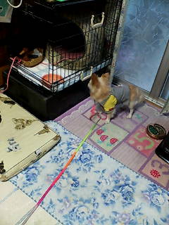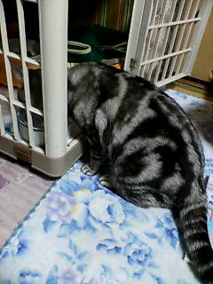 「ねぇねぇ、スケちゃん、アイリスは?」スケぞうに尋ねると、スケぞうは一目散にアイリス宅に走って行き、中をのぞき込みます。でも、アイリスはいません。隣の部屋で眠ってるようです。まだ探し続けるスケぞう。シャッター音を聞きつけ、すかさず写真におさまるラン。…カメラに怯えていた頃が懐かしいです。なんでこんなになっちゃったんだろう。
