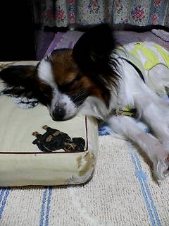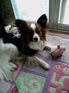 犬や猫って、枕が好きじゃありませんか?うちのだけかな…?アイリスもスケぞうもランも、みーんな枕をして寝るのが好きです。何かに頭を乗せるのが好き。ちなみにランの頭の下にあるのは父の枕なので、父が見たら大騒ぎかもですがまだ帰宅前なのでカメラにおさめてみました。記念にもう一枚ピンクの物体は、ランのエモノことスケぞうのブタさんです。どこに行くにも一緒です。…そして。自宅から、ランを見つめるスケぞうの冷たいまなざし