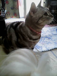 一日中おいかけっこを繰り返している2匹ですが、仲良し…なんだそうです、母曰く。お友達、なんだとか。こういう場面を見ると、そうなのかなぁ…とも思います。でも、私が常日頃目にするのは、こっちなんですよね。ま、まぁ、ケンカするほど仲が良い、とも言いますもんね