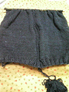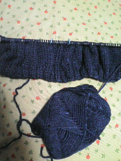 今日のところは、こんなトコです。後ろ身頃の3分の1くらい完成してるのかな。まだまだ先は長いです。でも、編むの楽しい