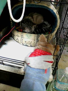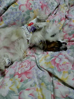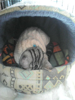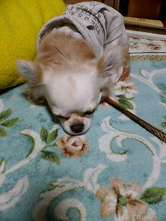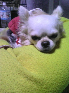 寒がりのスケぞうは、うずくまって暖をとってます。ランに比べると薄毛のスケぞうには厳しい季節がやって来ました。