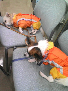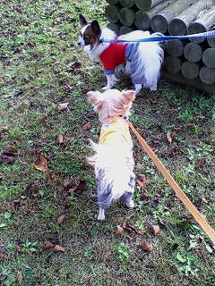 朝から細かく冷たい雨が降ったりやんだりしていたので今日のスケぞうとランはレインコート着用です。いつも落ち着きなくゴソゴソしてるラン。スケぞうは微動だにしません。