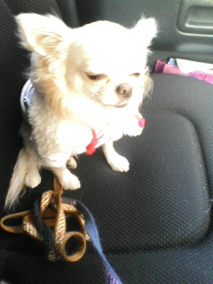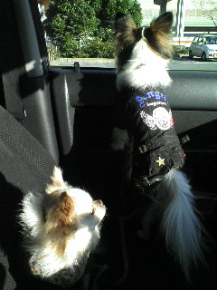 車を降りた主(母)を待つスケぞうとラン。車に戻ってきたとき、いつもランだけが騒いでいてスケぞうは横になっているのでランだけが見張りをしてるのかと思ってました。でも、実際はスケぞうも起きて待ってるみたいです。ランみたいに立ったり座ったりせわしなく動き回っていないだけみたい。