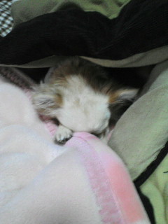 こたつでぬくぬく眠っているスケぞう。動き出すときはいつも、バレリーナのように後ろ足をピーンと伸ばしてストレッチしつつ油の切れたロボットみたいにギクシャクギクシャク歩いています。ヘルニアになりかかっているんだとか。「絶対安静です」とお医者様に怖い顔で言われたものの、痛み止めが効いてくるや否やランと暴れ回っています。寒さがこたえるようなのでとりあえず、こうやってぬくぬくおとなしく眠っててくれると安心なんだけどなぁ…。