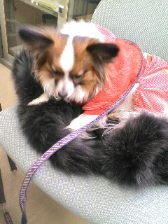 母の上着の上に、すかさず飛び乗るラン。きっと気持ち良いんだろうなぁ~