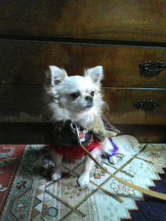 もともと衣装持ちのスケぞうですが、ヘルニアの疑いが濃厚となり、寒いと痛がったり、動きがスローになるので母がいつもたくさん着せています。今も、上着にセーターにつなぎに…ちょっと着ぶくれてますよね。首周りの毛がふわふわしてるおかげでなんとなく立派な犬に見える気がするのは飼い主バカでしょうか。