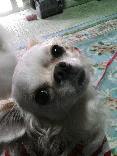 「…なんだよ」って相変わらず不機嫌そうなスケぞうです。スケぞうの基本は苦虫を噛み潰したような仏頂面。あとは一切興味ナシ!な無関心顔。でも、たまに満面の笑顔を見せてくれるのでものすごく表情豊かに見えます。そのせいか、いつもご機嫌で誰にでも愛想の良いランの方が表情のバリエーションが少なく見えます。得な犬かもしれません、スケぞうは。