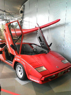 広島交通科学館に展示中のランボルギーニです。車好きの父が部屋に雑誌の切り抜きを飾ってたので刷り込まれたらしく、私のイメージするスーパーカーは、この車です。その影響か、小さい頃はガルウィングドアに憧れてまして、「免許を取ったらセラに乗る~」と心に決めてました。父に「女の子が乗るには派手すぎる」と反対されましたが(笑)ちなみにセラはガルウィングドアの国産車です。結局乗ったことありませんけど。