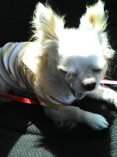 日中はともかく、朝晩少しだけ涼しくなってきました。今までが暑かったから、そう思うのかな?大あくびしてるスケぞうがいるのは私の車の中。