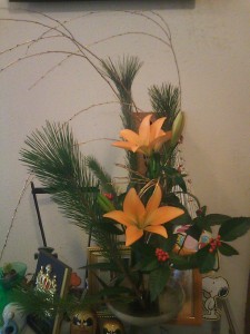 あけましておめでとうございます。どんな年末を過ごしましたか?我が家は、義母は骨折のため、病院で迎えるお正月となってしまいました。おばは、1月1日が誕生日で、御年72歳となりました。あけましておめでとうと誕生日おめでとうでWおめでとうです。 長男は、中学時代のお友達と年越し、長女は、やはり近所のお友達のお家で女子会☆そのうえ3番目はお友達と筑波山に初日の出を見に行くと、重装備してでかけていきました。 結局新婚以来の夫とふたりきりのお正月となりましたが、結局見るテレビ番組がちがうので、それぞれ気ままなお正月を迎えました。だんだん子供もはなれしめやかなお正月となっていくのでしょうね! 紅白を見ていたらあっという間に2012年になり、いつもの様に除夜の鐘を撞きに近くのお寺に☆去年は、すごく寒くて来る人もまばらだったけど、今年は、震災もあったせいか、人の出足が良かった。私は、寒かろうが雪がふろうが、欠かしたことはない。中には毎年この日だけ会うという人もいたりして、それも楽しみの一つ☆土手の向こうでは、花火があがる、去年は、景気が悪くてぽんぽんだったけど、震災で夏の花火が中止になったせいか、盛大にあげていた。土手にあがって見ている男の子達の声や女の子達の声が土手中に響いて、ハッピーにゅーイヤーとさけんでいた。日頃のストレスが吹き飛ぶぐらい大きい声だった。 私がついた除夜の鐘は、101個めだった。101個目の煩悩ってなんなのでしょうね☆いつものようにお参りして、今年は、かわいい良寛さんの根付をもらいました。そしてここでは、ボーイスカウトが毎年豚汁をつくってくれます。寒い夜には、とても暖かくておいしい豚汁です。そこに今年震災の時に、勉強を見てあげて合格した彼女がいて、久しぶりにあいました。なんと中学時代は、かなり勉強に苦しんでいたけど、高校ではベスト10に入っているんですよ!と嬉しそうに報告してくれました。ほんの少しだけど、応援団になれたような気がして嬉しかった☆みんな未来に向けて進んでいるんですね! 秋田の医学部にすすんだ彼も里帰りしていて、たまたま昼間ふみきりで間違えてクラクションならしてしまったら、なんと振り向いたのは彼だった。幼稚園時代からしっているので、本当にかわいい☆気軽に声をいつもかけてくれてなんか気があうのね!年齢は30歳差だけどね~ 精神年齢が低いのかもしれないけど、小学生にまでHさんと声をかけられてしまうのだわ!うろうろしていたら、今度は女子会中の娘が友達とやってきて、こちらも長年のお付き合いなので、つかの間だけど、仲間にいれてもらって楽しかった。旦那さんに豚汁をお土産にもって帰ったが、すでに電気をけして寝ていた。まあそんなもんだね!またことしも沢山のしあわせの花が咲くことを祈って、今年もよろしくお願いいたします。といってはみたものの・・・まだお煮しめつくってなかった~