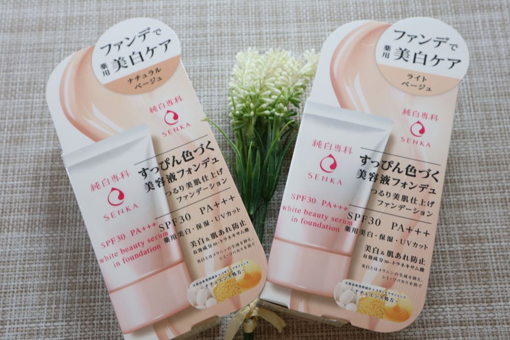 すっぴん色づく美容液フォンデュ(医薬部外品)が資生堂の純白専科から新登場しました。口コミサイトでも№1の純白専科。美容液からつくったファンデーションです。お色は2種類あります。ライトベージュとナチュラルベージュ薬用美容液効果で、ファンデをつけている間も乾燥・毛穴・肌荒れ・シミ予防を同時ケアしてくれるんですよ。オールシーズン使用可能SPF30PA+++私は、ナチュラルベージュが自分の肌の色に近いので早速使っています。ナチュラルベージュ色づき美肌ベール処方で「3つの肌補正効果(毛穴・キメ・色味補正)」により素肌がきれいに仕上がるんですよ。トラネキサム酸配合でメラニンの生成を抑えてくれるのが私には魅力的です。使用方法は、朝のスキンケアの後にパール粒1個分をとって顔全体になじませます。早速、試してみたいと思います。容量は30gです。手のひらサイズで少し小さめのファンデ。チューブタイプになっています。少量から出すことができます。私の肌で早速試してみましょう。(ナチュラルベージュ使用)肌になじませていくと、薄くて軽いタッチ。厚塗りしないでも、しっかり肌に密着してくれます。ファンデを塗っているのに、塗っている感じがしないんです。すっぴんのようなファンデです。実際に私の肌で使用しましたが、朝塗って夜までしっかり密着してくれてカバー力もありますよ。でも、厚塗りにならずべたつかない。やさしい仕上がりが1日中続いているのがうれしいですね。ファンデを塗っているのに、美容液を塗っている感じで日焼け止め効果もあるのでこれから冬の私の乾燥肌にもぴったり!ライトベージュ純白専科様のプロモーションに参加中