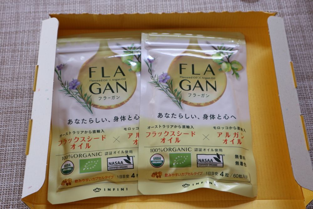 亜麻仁油ってご存知でしょうか?そうフラックスシードオイルです。健康のために以前亜麻仁油を毎日スプーン1杯なめていた時期がありました。でもね、毎日スプーン1杯って面倒になってしまってやめてしまいました。それに、亜麻仁油は開封すると酸化がすすむんですよね。今回は、オーストラリアのオーガニック栽培の亜麻仁油を直輸入した100%ピュアなサプリを見つけたので紹介したいと思います。完全オーガニックのフラーガン1袋は、60粒入りです。1日4粒を目安にいただきます。ということで、1袋は約15日分。2袋で約1か月分になります。「なんだかやる気がでない」「食生活が不規則」「集中力が続かない」「万年運動不足」「最近老けた気がする」「物忘れが・・・・」そんな方に魚油の8倍ものオメガ3 (DHA等)を含むフラーガンがオススメなんです!今流行りの亜麻仁油には体内でDHA・EPAにかわるα-リノレン酸が55%以上も!美容界で大変有名なアルガンオイルはビタミンEがオーリブオイルの4倍も!さらにアルガンオイルは抗酸化作用が強く、酸化しやすい亜麻仁油と配合することでお互いの良いところをフルに引き出してくれるんですね。まさに奇跡の融合です!亜麻仁油はオーストラリアから、アルガンオイルはモロッコから直輸入しているそうです。オーガニック認定も受けている100%ピュアサプリで内面から綺麗を目指したい方にぴったりのサプリなんです。フラーガンで素敵な目覚めをフラーガンのサプリの特徴は3つ。・亜麻仁油(アマニ)とアルガンオイルの100%ピュア植物オイルサプリ・産地直輸入(オーストラリア/モロッコ)・日本の工場にてカプセル化無香料、無着色です。100%オーガニックで安心安全なサプリです。原材料をみても余計なものが入っていないのがうれしい。【フラーガン】酸化しやすい亜麻仁油をアルガンオイルで酸化を防ぎ亜麻仁油本来の力を100%引き出すことに成功したサプリがこれなんですね。フラーガンには、オメガ3脂肪酸が摂れるんですね。アルガンオイルは、美容のためのオイルと呼ばれていて優れた抗酸化力によってお肌にとってもいいんです。特に乾燥肌や敏感肌の悩みのある方にはツヤ肌へと導いてくれますよ。サプリは、きれいな黄金色です。私は、毎朝4粒をいただいています。摂取目安は、1日4~6粒程度です。ソフトカプセルタイプになっているのでつるんとしていてとっても飲みやすいのも特長です。私は4粒一気にお水と一緒にいただいています。フラーガンでDHA・EPAを効率よく